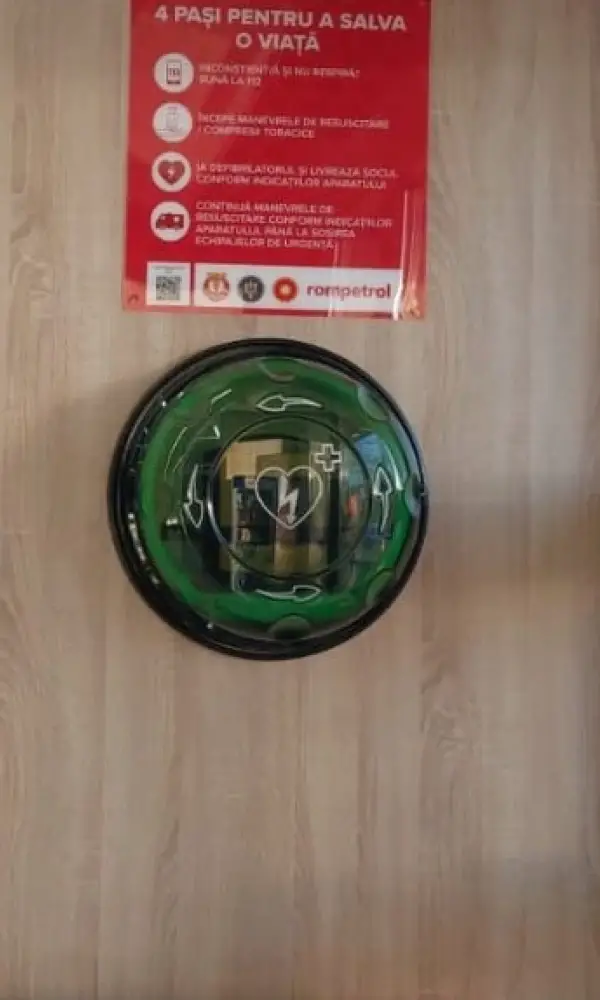 The project extends beyond the fuel station network. In Prahova County, six AED cabinets have been placed in heavily frequented public spaces — public institutions, markets, and recreational areas — in collaboration with Ploiești City Hall. Five additional locations in Constanța County have also been equipped. All Rompetrol station staff across the network have received specialist training in AED use and first aid.